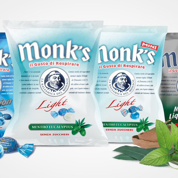 "Si narra che nel 1817, in Inghilterra, il monaco William di Doncaster preparasse decotti ed infusi di erbe per aiutare i confratelli ad affrontare e guarire i malanni di stagione. Un giorno poi, miscelando mentolo ed eucaliptolo, ideò una caramella dal gusto intenso e rotondo, che univa ai benefici del balsamico il piacere di una freschezza persistente. Ècco come inizia la narrazione della mitica caramella balsamica Monks."